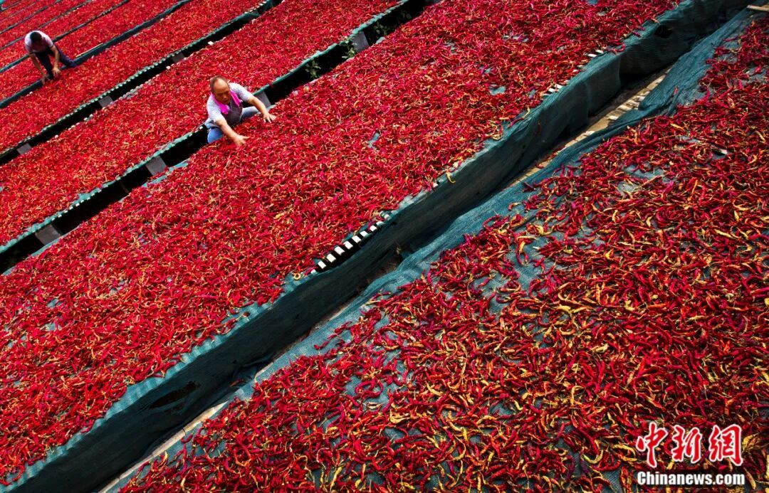 冀南平原上,连片的辣椒田如红色海洋翻涌——细长的羊角椒紧紧扒着枝头荡来荡去,油亮的皮肤晒得通红。