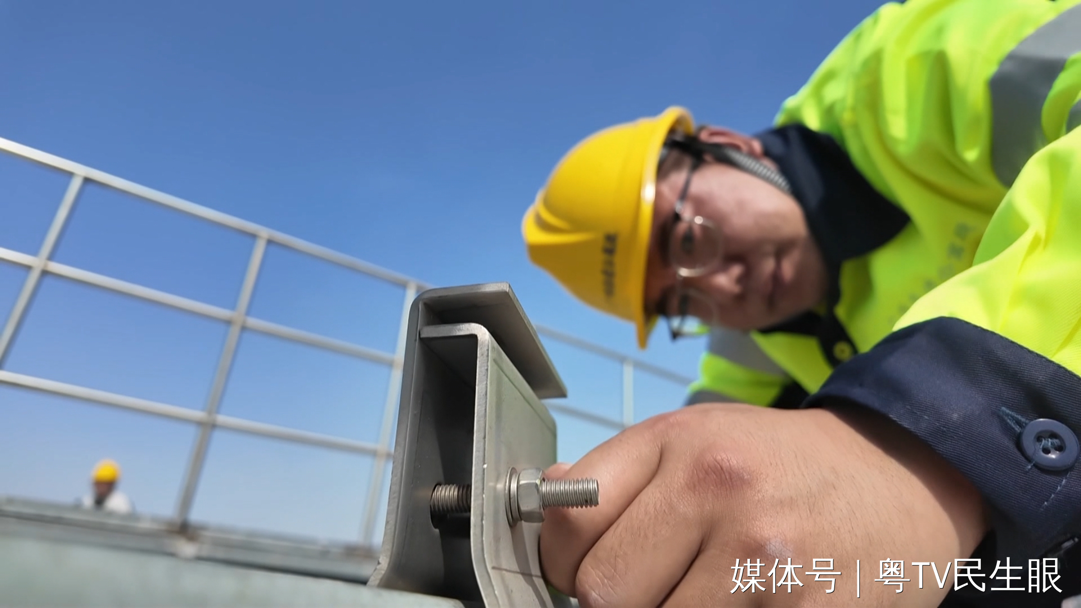 屋面上的最高点距离地面52米,最低点47米,有些地方踩下去,甚至是软的,人很容易重心不稳,黄荣彬说,2024年刚来到广州南站时,相比于害怕高空作业,更多的是好奇。他说刚上到屋面时,只感受到一个字——美!充气膜在阳光的照射下,感觉就像一朵棉花一样。