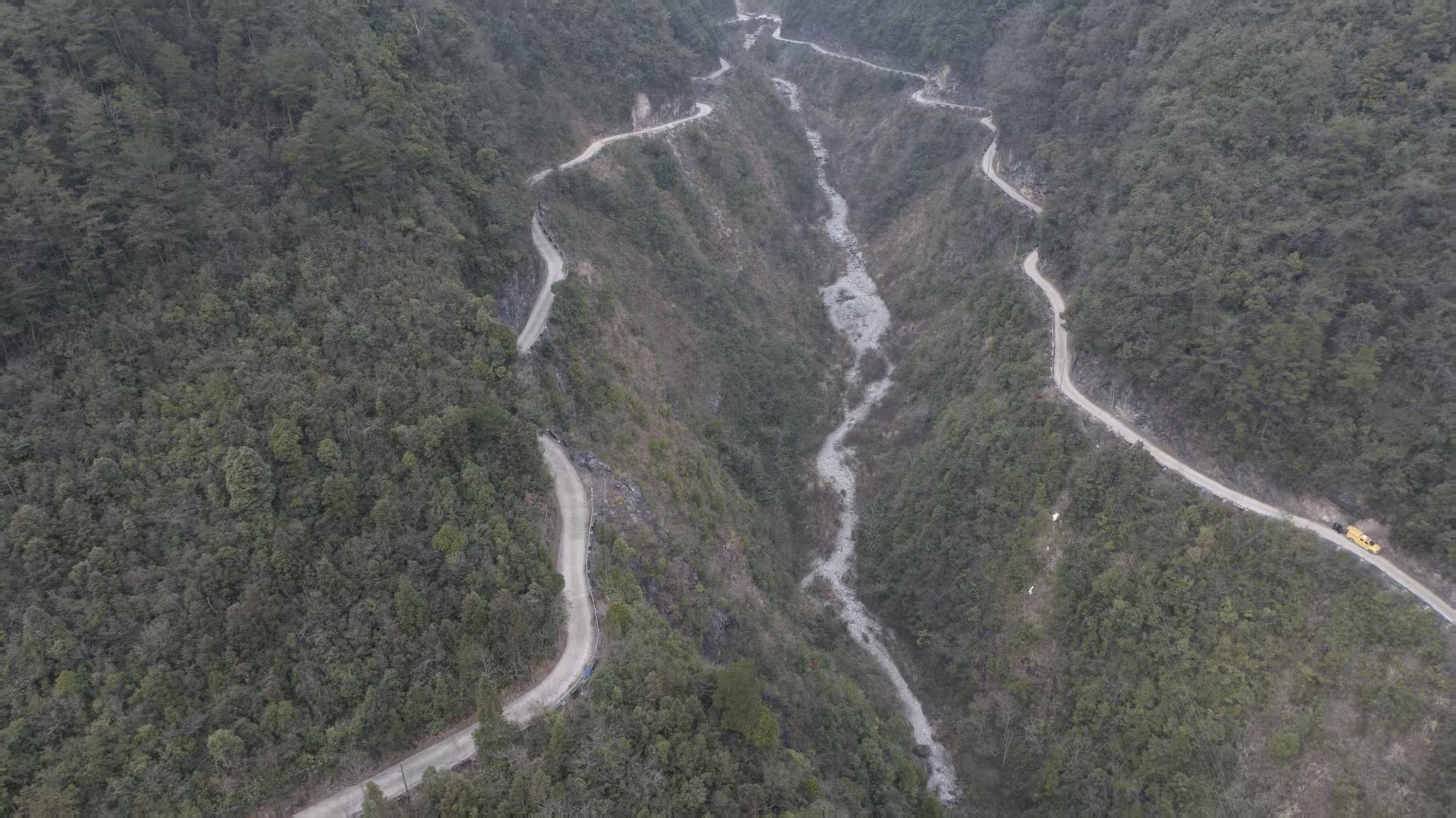 通向渔山村的悬崖公路(无人机照片)。新华社发