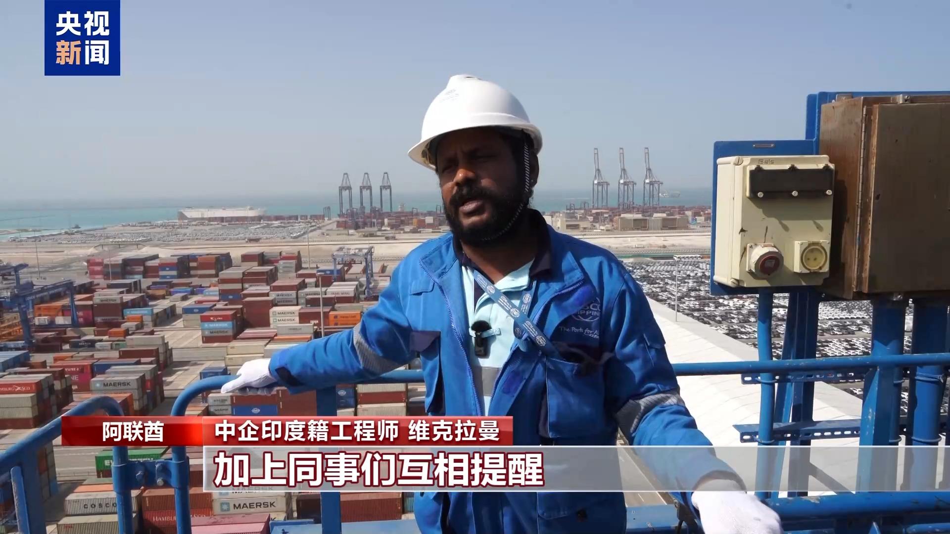 阿布扎比码头自2018年开港以来,持续增长的港口吞吐量成为中阿务实合作蓬勃发展的缩影。在码头上工作的中企员工中,有不少外国面孔,他们和中国同事并肩奋斗。