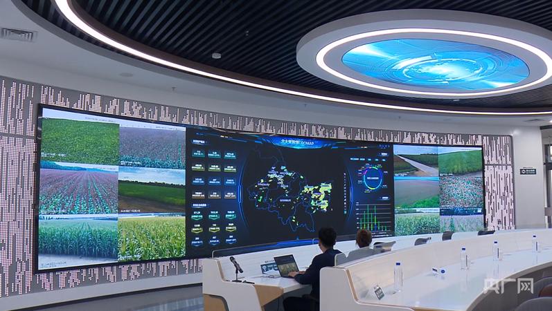 在北大荒信息公司的智慧农业大数据中心,数据库集合了北大荒4800多万亩耕地80年来的种植数据,工作人员通过操作智慧大屏展示了黑土地智慧农业“未来”的模样。