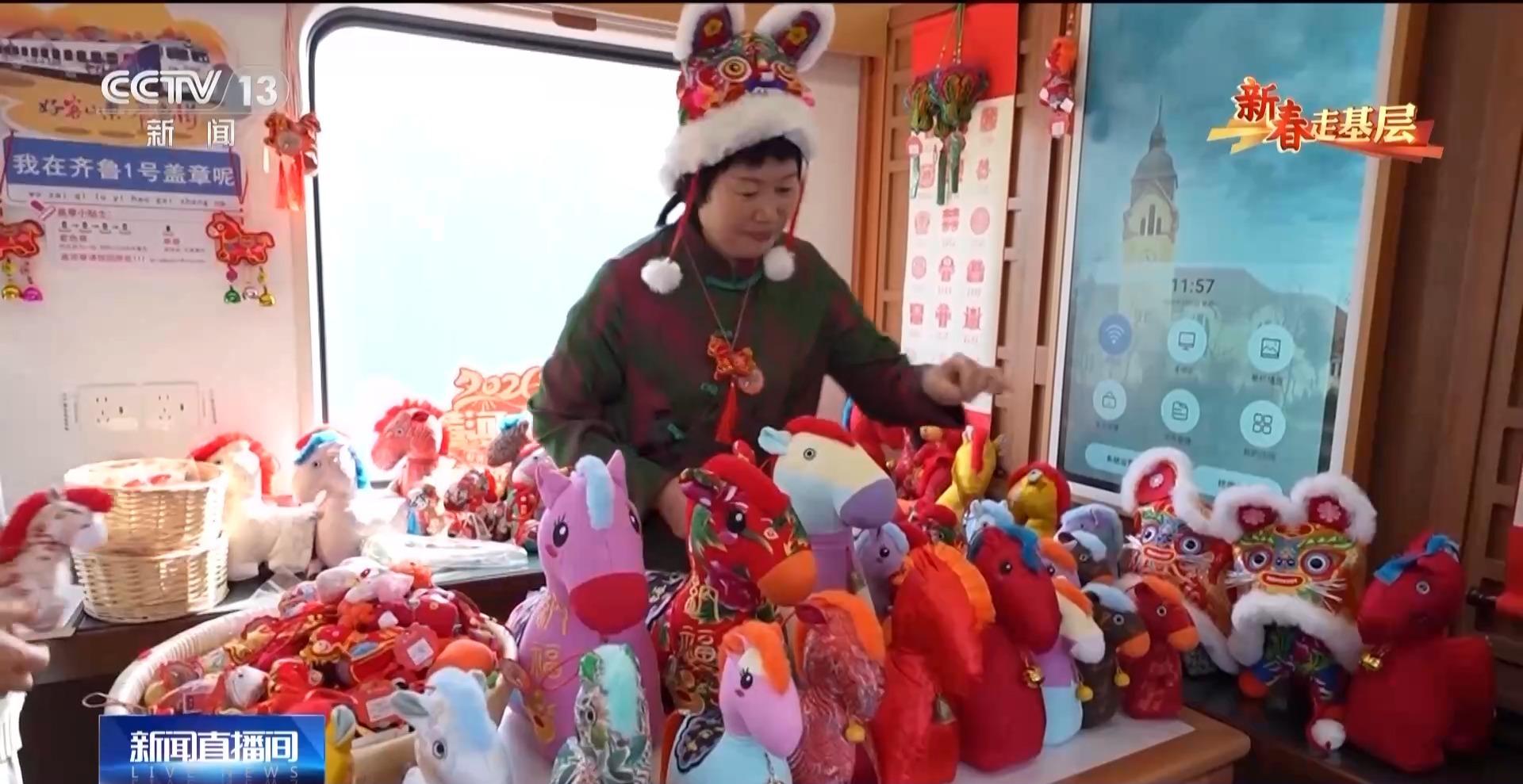 每天上午11点,“齐鲁1号”准时从济南站发车,记者登上列车,浓浓的年味儿扑面而来,旅客可以在这里打牌、下棋、做游戏。这两位老人自己动手贴起了窗花。