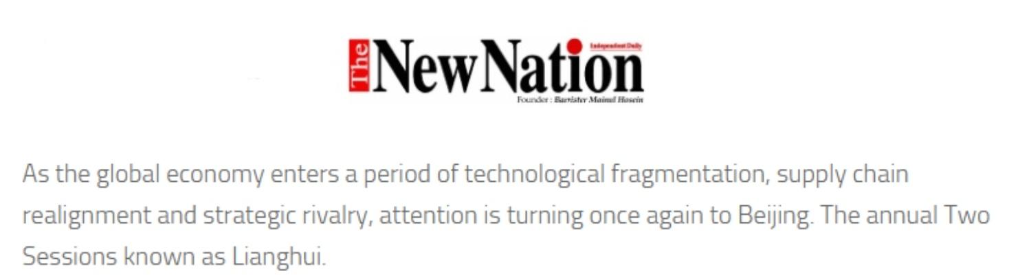 孟加拉国《国家独立报》网站近日刊文称,在全球经济进入技术分化、供应链重组和地缘政治持续紧张的时代背景下,全球目光再次聚焦北京,关注一年一度的“两会”。