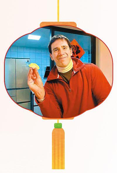 来华工作的阿根廷籍人士宝弟在上海同事家中过春节。韦蕴琛摄