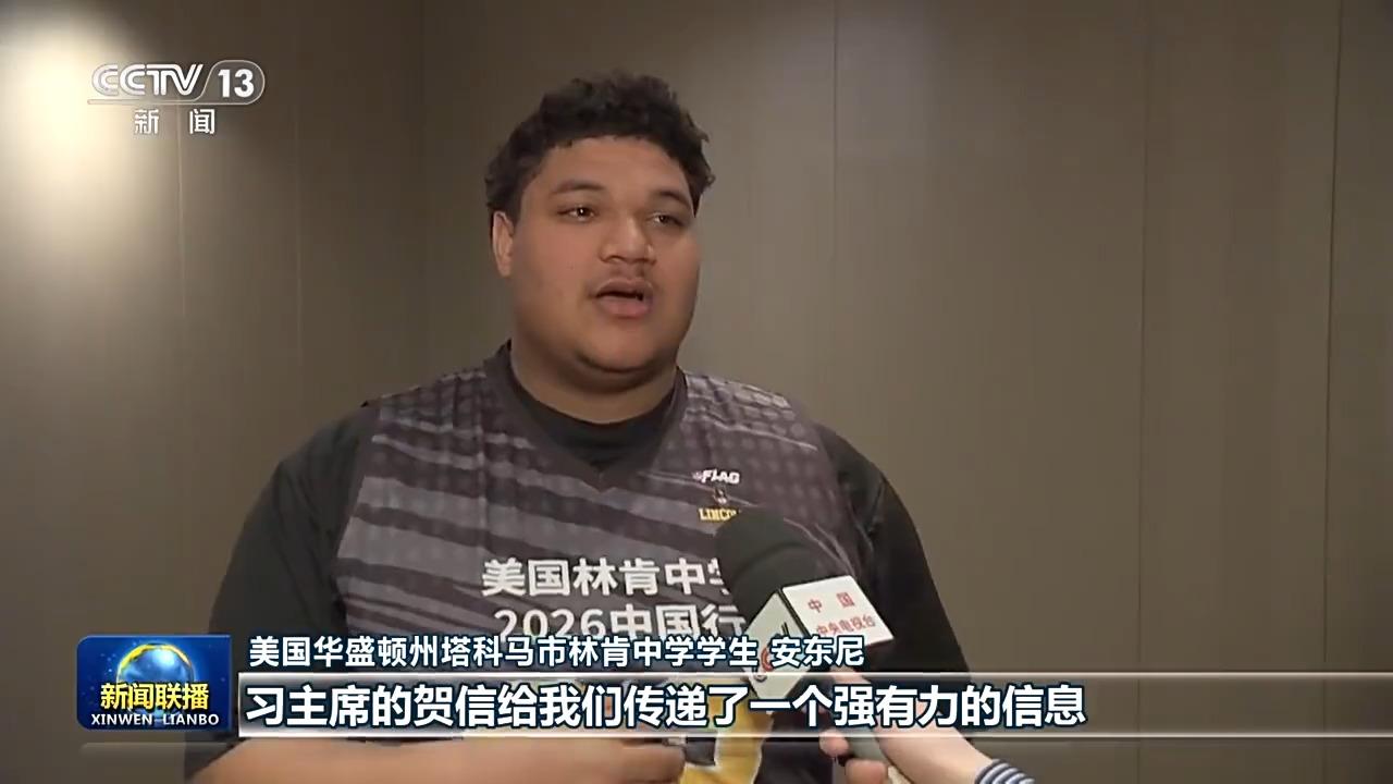 美国华盛顿州塔科马市林肯中学学生 安东尼:习主席的贺信给我们传递了一个强有力的信息,让我们坚信彼此学习、相互理解就能让人心贴得更近。我要把我亲身体验所经历的一切,把我看到的真实的、充满活力的中国,讲给我家乡的朋友们听。