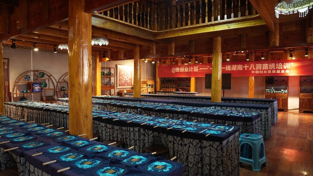 “十八洞片区苗绣乡村振兴示范基地”研学教室。新华社记者 戴斌 摄