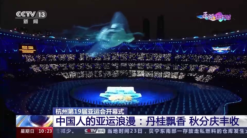 杭州亚运会开幕正值中国二十四节气的秋分,在这个丹桂飘香,喜迎丰收的时节,杭州亚运会开幕式以中国人独有的浪漫元素喜迎四方宾朋。
