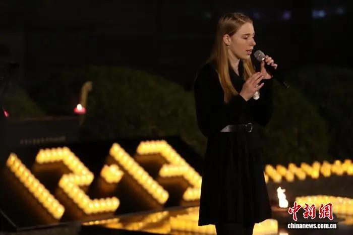 2019年12月,梅根·布莱迪在“烛光祭·国际和平集会”上演唱自创歌曲《感同身受》。中新社记者 泱波 摄