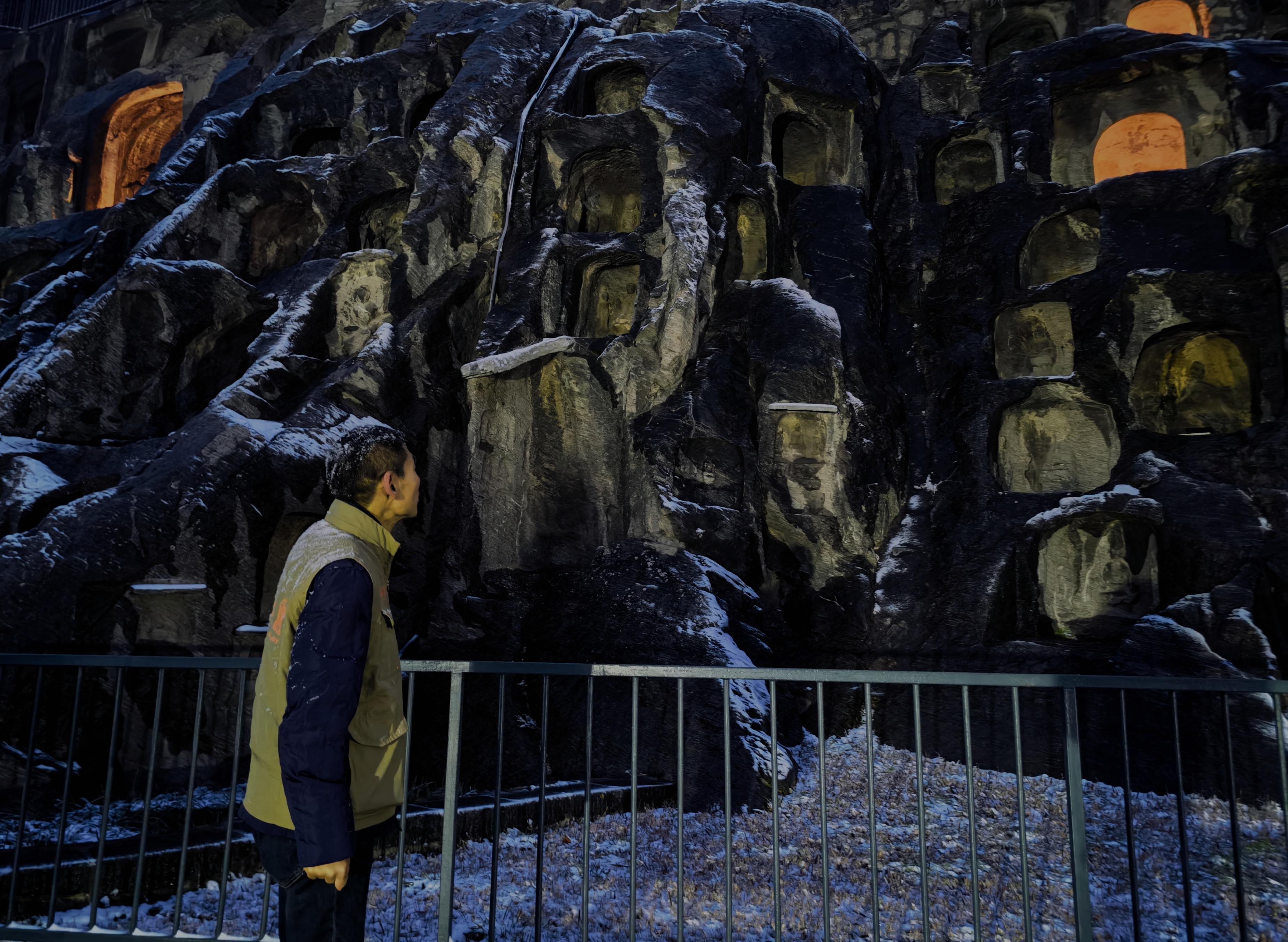 2025年最后一天,龙门石窟研究院石窟保护研究与遗产监测中心副主任、研究馆员马朝龙像往常一样在窟龛间夜巡。自大学毕业到这里工作以来,这样的巡查,他已不知走了多少回。