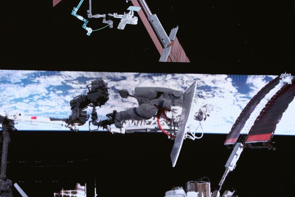 △这是2026年4月16日在北京航天飞行控制中心屏幕上拍摄的神舟二十一号乘组航天员武飞在舱外工作的画面。 2025年11月1日,神舟二十一号载人飞船成功对接于空间站天和核心舱前向端口,历时约3.5小时,创造了神舟飞船与空间站交会对接的最快纪录。这代表我国实现了航天发射、控制、导航、通信等全链条技术上的全面突破。 我国航天基础设施不断完善——长征系列运载火箭累计发射超630次,发射成功率超97%,重复使用运载火箭加速攻关,国家卫星互联网加快建设,应用卫星实现系列化发展和业务化运行,在轨卫星数量超过1200颗,航天发射场、航天测控网布局进一步优化完善。 空间科学取得重大原创成果——“悟空”、“慧眼”、中法天文卫星探索宇宙形成与演化奥秘,“张衡一号”“羲和号”加深对日地环境认知,“天琴一号”“太极一号”奠基未来空间引力波探测,取得系列原创性成果。 中国航天事业坚持自立自强、自主创新,在人类攀登科技高峰征程中一次次刷新中国高度。